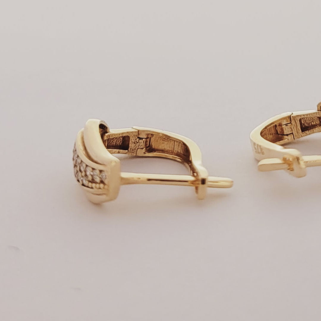 AROS FORMA U CON DOBLE HILERA DE CIRCONIA BLANCA AL MEDIO Y BORDE DE ORO