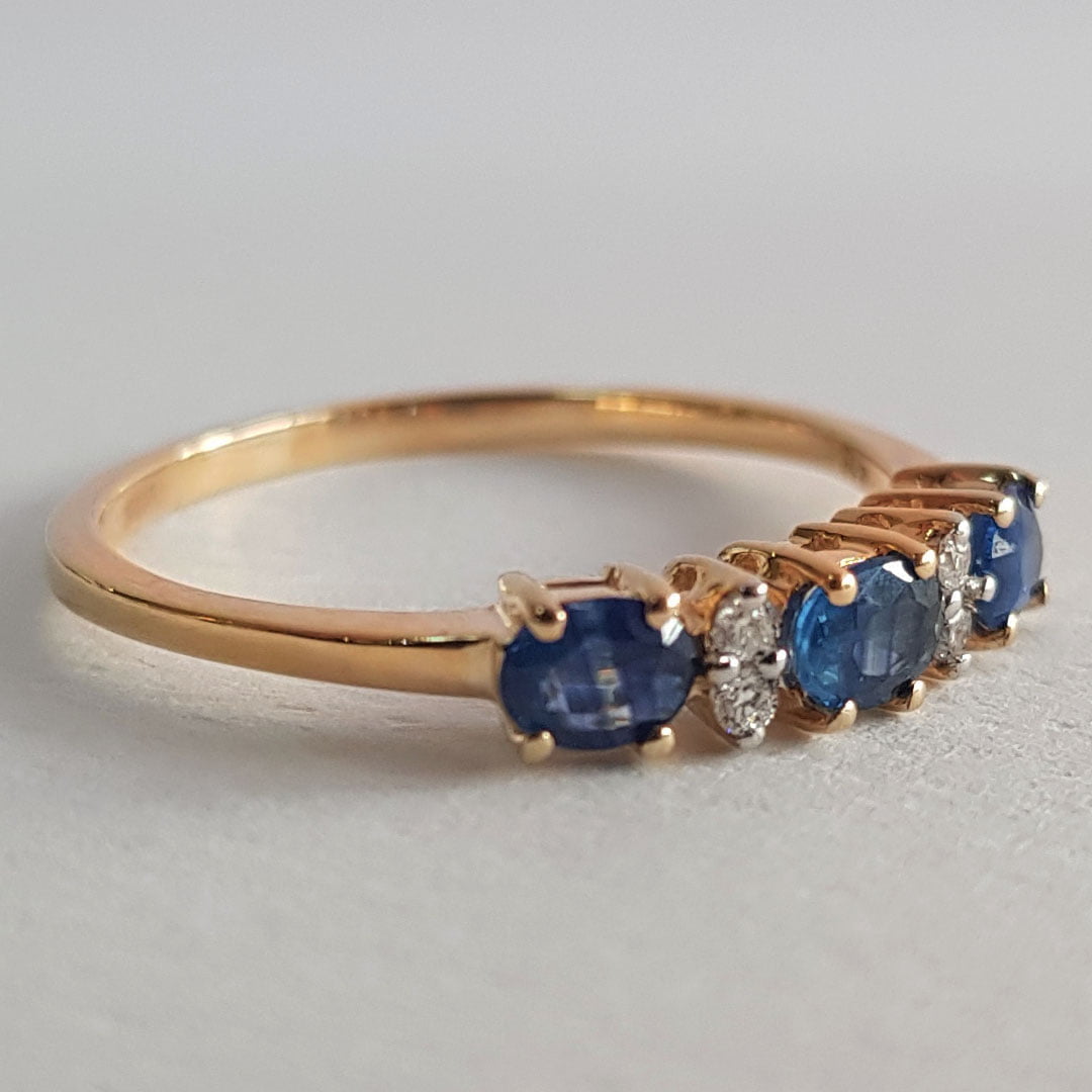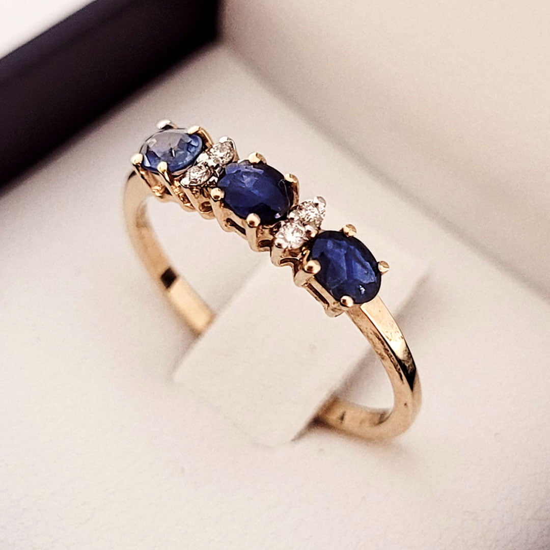 ANILLOS ORO FINO CON 3 ZAFIROS Y BRILLANTES